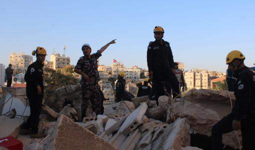 تواصل كوادر الدفاع المدني عملية البحث عن محاصرين من حادثة انهيار عمارة عصر اليوم في منطقة اللويبدة مكونة من 4 طوابق. وفاتان و 7 إصابات