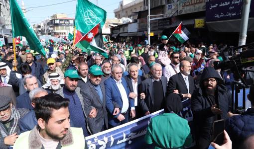 مسيرة حاشدة في عمان نصرة للمسجد الأقصى 2023-01-27 15:57 مسيرة حاشدة نظمتها الحركة الإسلامية بعد صلاة الجمعة من أمام المسجد الحسيني وسط العاصمة عمان، بمشاركة فعاليات شعبية وحزبية، نصرة للمسجد محلي