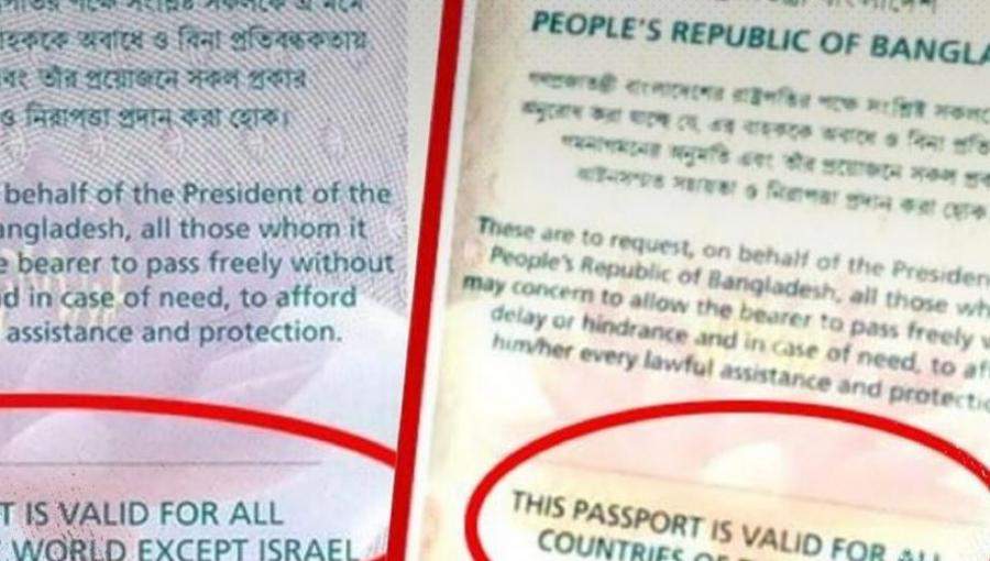 أعلنت بنجلادش أن جواز السفر سيكون صالحاً لجميع دول العالم بعد أن كان يتضمن باستثناء ( إسرائيل ) .