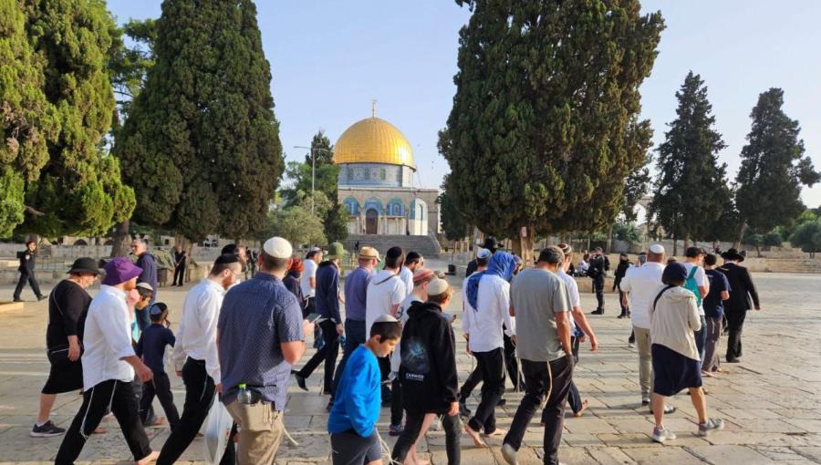 اقتحم مئات المستوطنين صباح اليوم، باحات المسجد الأقصى المبارك، وجاء هذا الاقتحام قبيل مسيرة الأعلام ، وقد تجمع المستوطنون بشكل مجموعات، بينهم وزراء في حكومة اليمين المتطرف، وأعضاء في الكنيست الإسرائيلي.