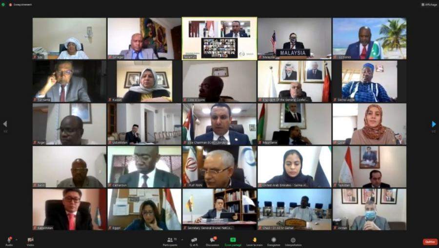 أعمال الدورة 41 للمجلس التنفيذي لمنظمة العالم الإسلامي للتربية والعلوم والثقافة (الإيسيسكو)، التي عقدت على مدار يومين عبر تقنية الاتصال المرئي بحضور أعضاء المجلس التنفيذي ممثلي الدول الأعضاء.