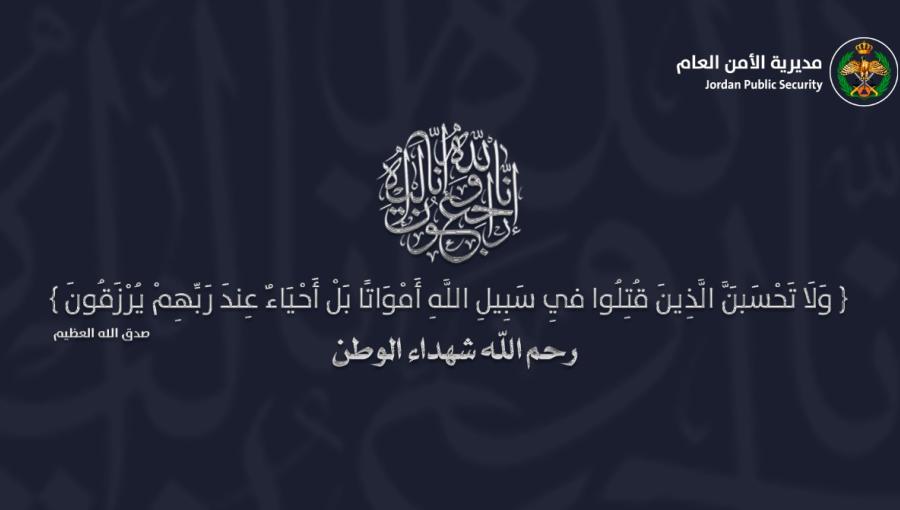 وأشار البيان أن مديرية الأمن الـعام إذ تنعى شهدائها الذين ارتقوا لبارئهم مدافعين عن أمن الوطن وترابه الطهور، لتؤكد أنها مستمرة في أداء واجباتها ومواصلة جهودها في مسيرة الفداء والتضحية وخدمة الأردن العزيز والغالي، وأبنائه وحفظ أمنهم، "وأن دم الشهداء لن يزيدينا إلا صلابة وقوة، لمواصلة واجبنا المقدس والبر بالقسم الذي قطعناه على أنفسنا".