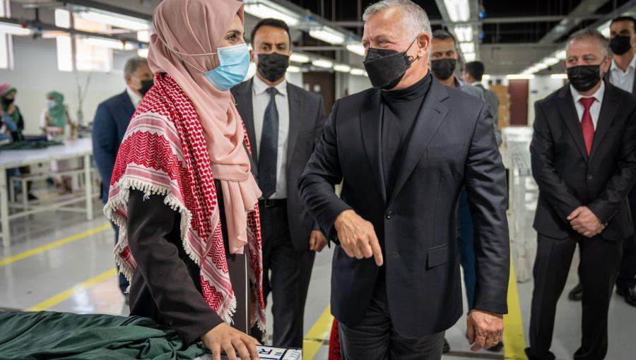 الملك يزور مصنعاً للألبسة في لواء المزار الشمالي