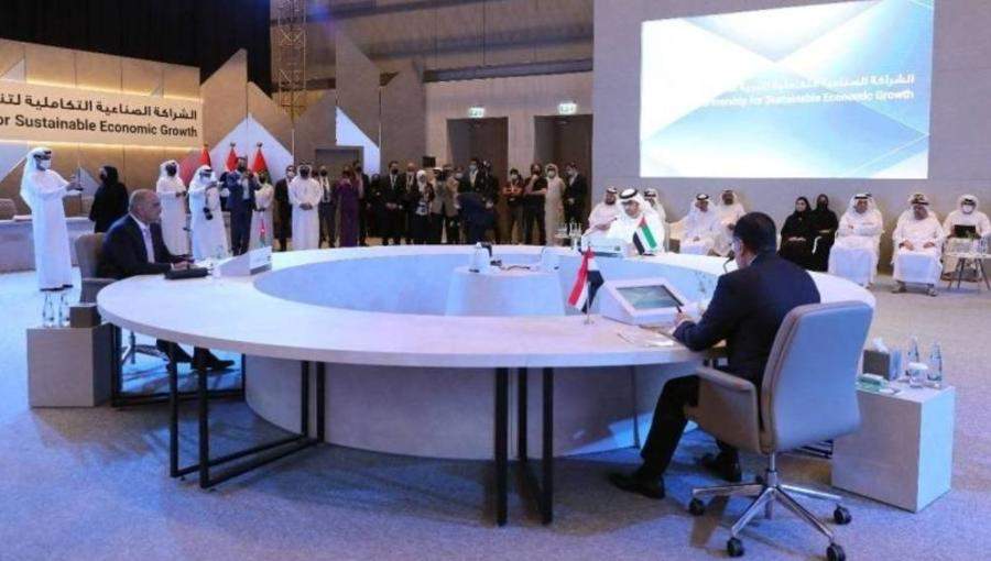 ووقعت الدول الثلاث على مبادرة الشراكة الصناعية التكاملية لتنمية اقتصادية مستدامة، بحضور رئيس الوزراء بشر الخصاونة، والشيخ منصور بن زايد آل نهيان نائب رئيس مجلس الوزراء وزير شؤون الرئاسة في الإمارات، ورئيس الوزراء المصري الدكتور مصطفى مدبولي.