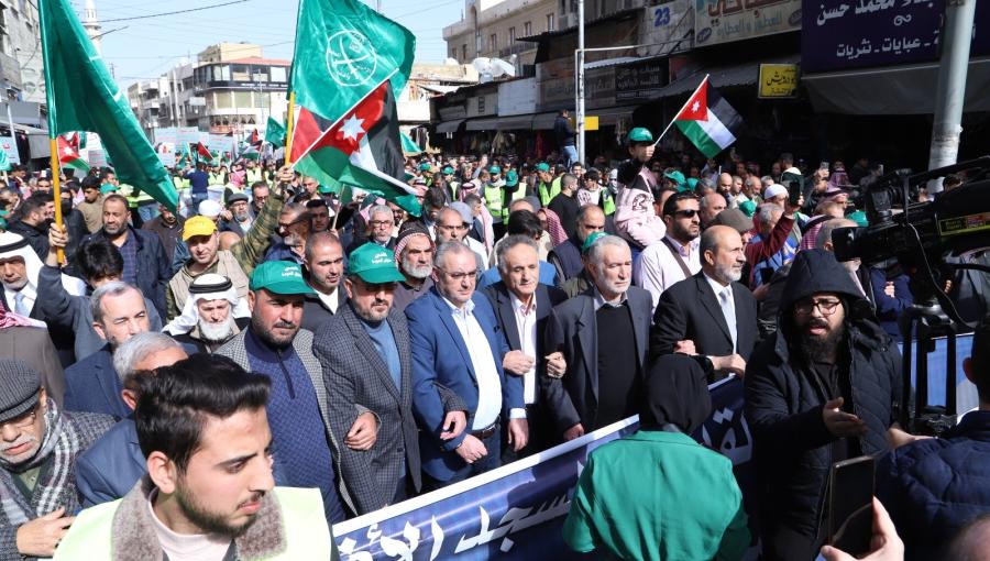 مسيرة حاشدة نظمتها الحركة الإسلامية بعد صلاة الجمعة من أمام المسجد الحسيني وسط العاصمة عمان، بمشاركة فعاليات شعبية وحزبية، نصرة للمسجد الأقصى الذي يتعرض فيها إلى انتهاكات يومية من قبل المتطرفين الصهاينة.