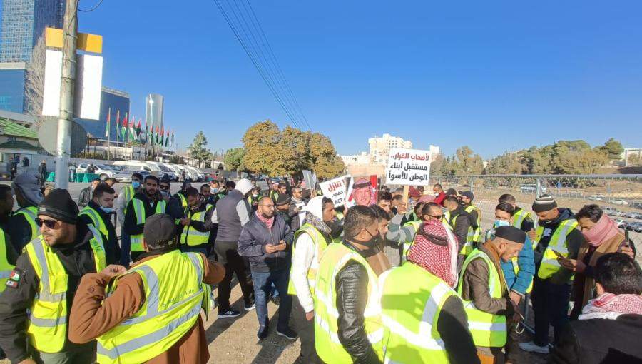 اعتصم عشرات من موظفي شركة APMT المتخصصة في تشغيل الموانئ أمام مجلس النواب اليوم، للمطالبة بإلحاق 224 موظفا بكادر شركة ميناء الحاويات في العقبة ACT والتي تتبع لنفس المالك، وذلك وفق اتفاقية قديمة بين الشركتين تنص على أن كل من قام بخدمة سنتين بالشركة الأولى سوف ينضم إلى كادر شركة ACT ذات الامتيازات الأفضل، وفق قول المعتصمين.