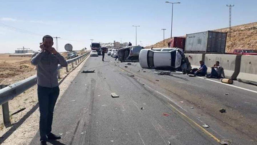 18 إصابة منها 3 بحالة بالغة إثر تدهور حافلة على"الصحراوي"