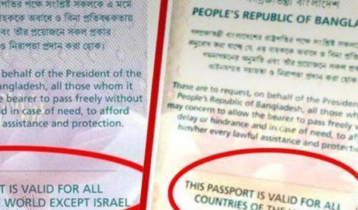 أعلنت بنجلادش أن جواز السفر سيكون صالحاً لجميع دول العالم بعد أن كان يتضمن باستثناء ( إسرائيل ) . وقال وزير الداخلية أسد الزمان خان، إن هذا