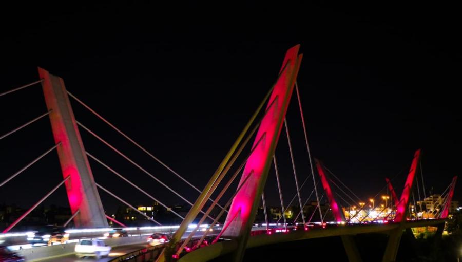أضاءت أمانة عمان الكبرى جسر عبدون باللون العنابي، بمناسبة بدء بطولة كأس العالم لكرة القدم في قطر.