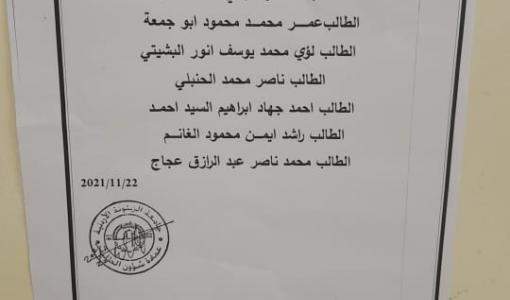 أحالت عمادة شؤون الطلبة في جامعة الزيتونة اليوم عددا من طلبتها إلى لجنة تحقيق، على خلفية مشاركتهم في فعالية تضامنية مع الأسرى الفلسطينيين