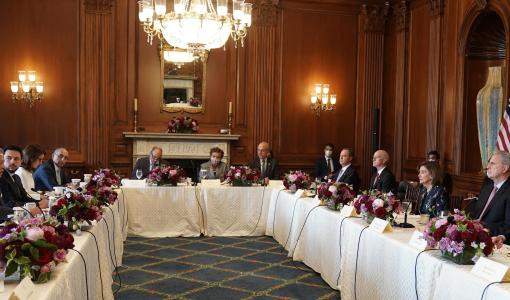 قال الملك عبد الله الثاني في تصريحات مشتركة مع رئيسة مجلس النواب الأمريكي نانسي بيلوسي في مبنى الكابيتول "أنه جاء لواشنطن لكي يرى كيف يمكننا
