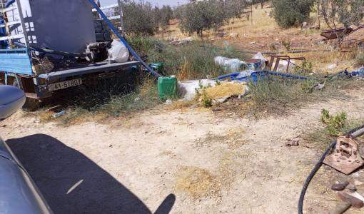 تلقت حسنى معلومات من مصادر خاصة، تفيد أن مجموعة من الأشخاص، يقومون بـ سرقة مياه من الخطوط الناقلة المحاذية للطريق الصحراوي، في منطقة جرف
