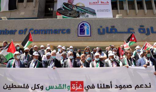 شارك رؤساء غرف تجارية وممثلو قطاعات ورؤساء نقابات وجمعيات أصحاب العمل بالوقفة التضامنية والاحتفالية التي اقيمت اليوم أمام غرفة التجارة