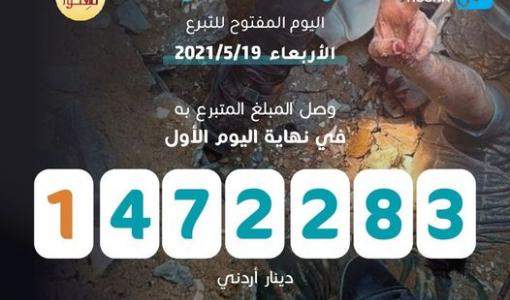 بلغ مجموع ما تبرع به الأردنيون في ختام اليوم المفتوح من حملة "غزة معاً ننصرها " ،( 1,472,283) مليون وأربعمئة واثنان وسبعون ألفًا ومئتان